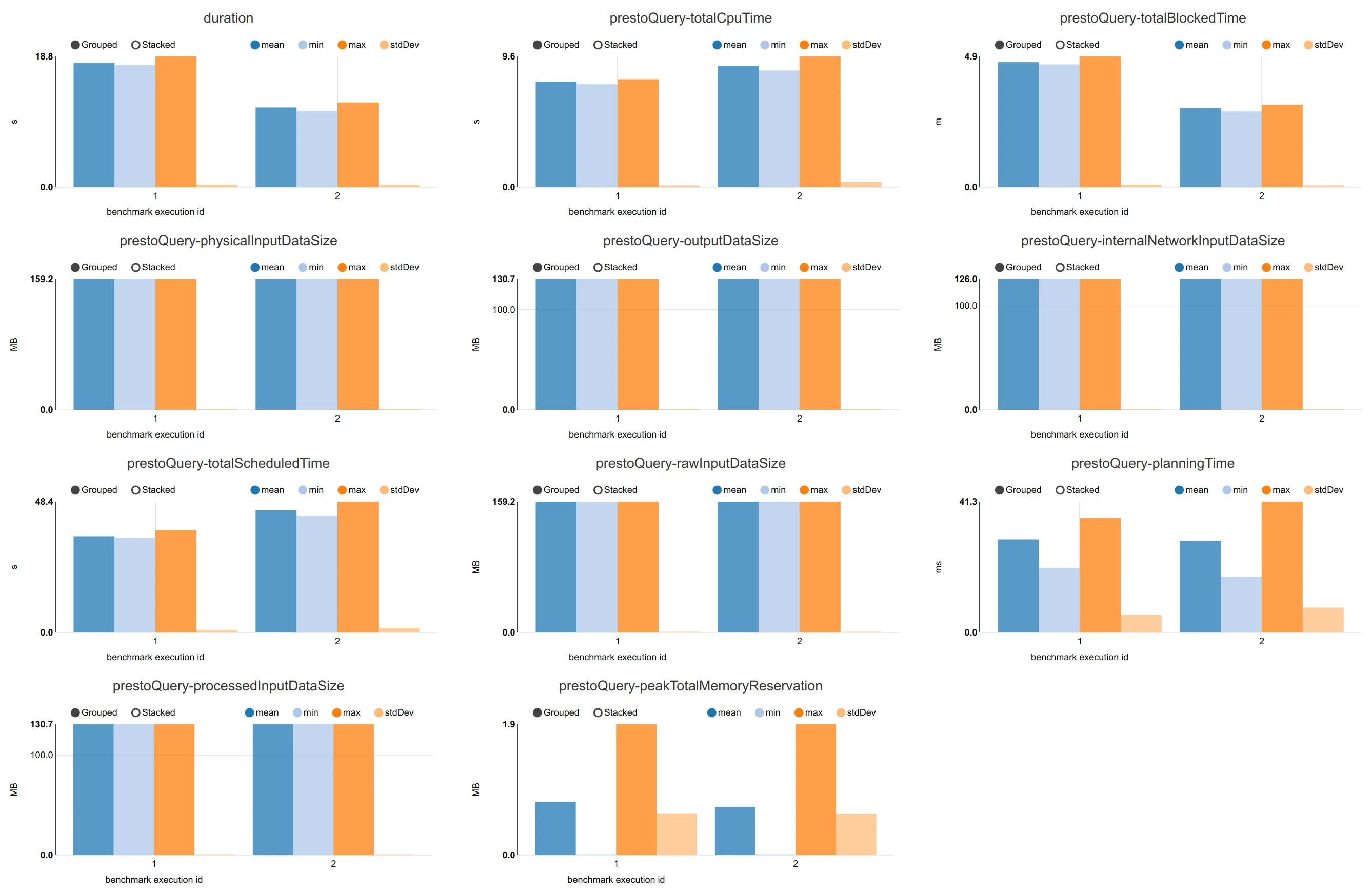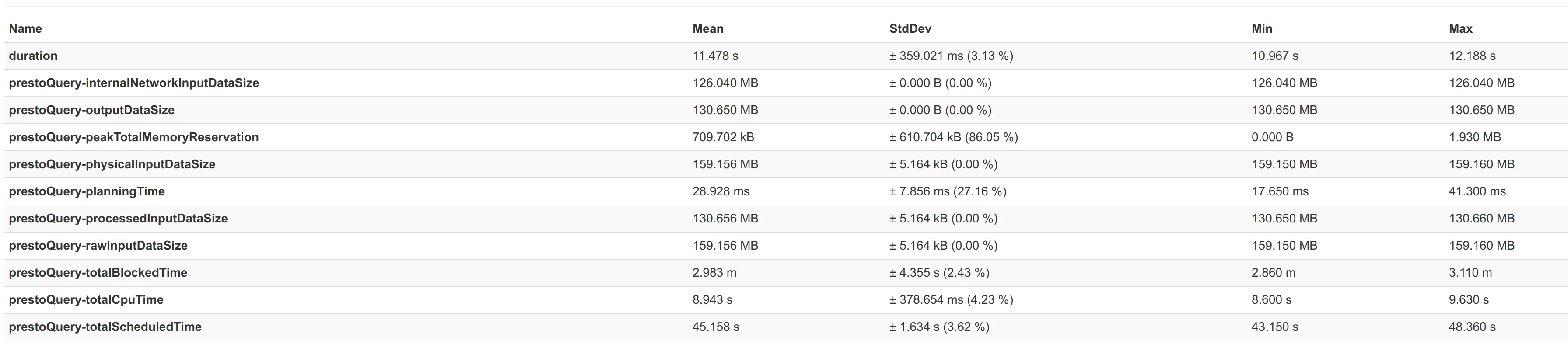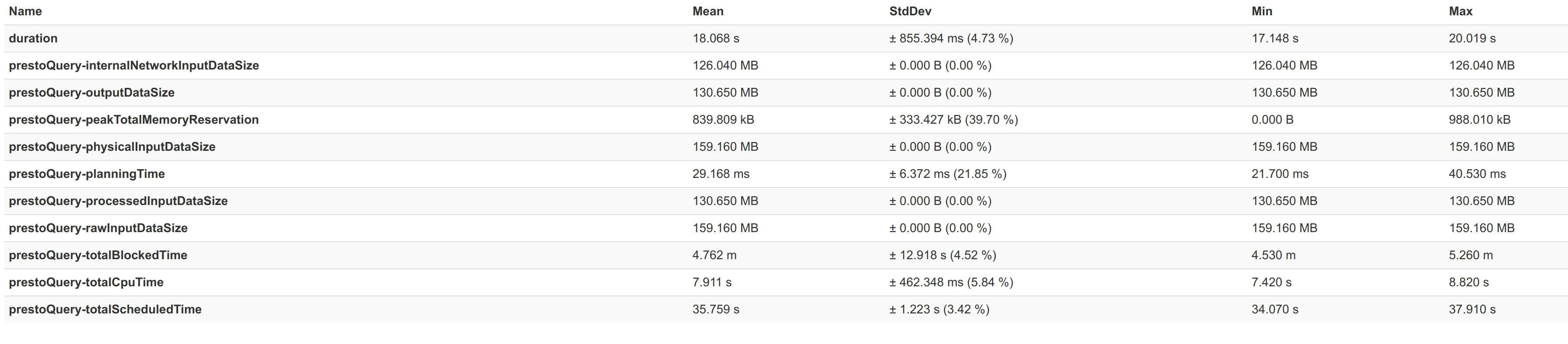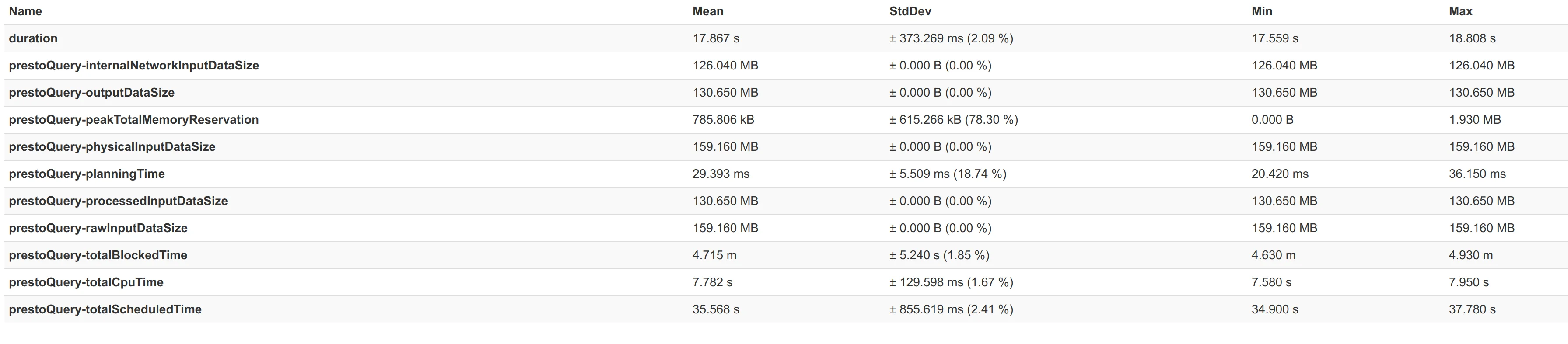 Just in order to give some idea of how good the connector really is, attached here are some performance numbers from a benchmark we did with benchto between the Elasticsearch connector from Presto 329 and our connector.
