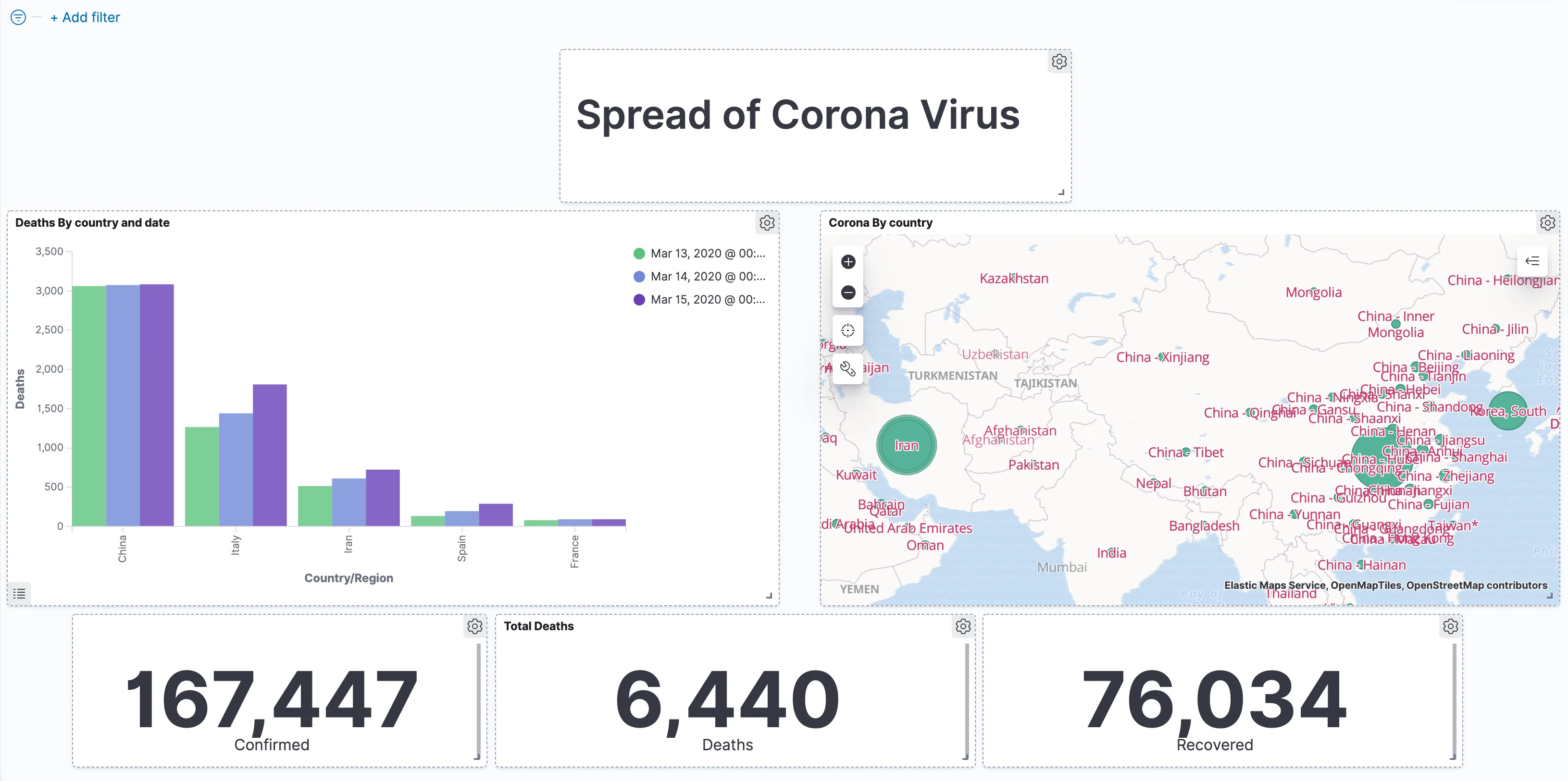 Standing on the shoulders of millennia of human achievements, and using Elasticsearch and Kibana, we'll create a map of the world to show the spread of the novel Coronavirus. In the previous posts we've loaded the data and analyzed it using Discovery, some visualizations and a dashboard. Showing the data on a map will require some additional work, but don't worry, it's not a mammoth task.